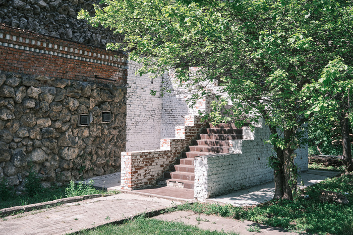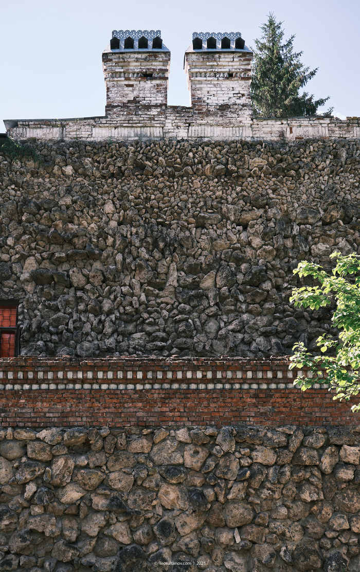 Вход на территорию через стену-крепость с воротами. На обратной стороне стена выложена камнем вулканической породы Везувия, да-да, того самого из Неаполя что в Италии, как бы это странно не казалось. Это что-то на богатом в общем, развлекались.