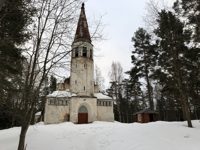 Подкрепившись на заправке френч-догами и кофе, не особо далеко отъезжая, на пути возникла вторая точка интереса - Заброшенная кирха в поселке "Лумиваара"