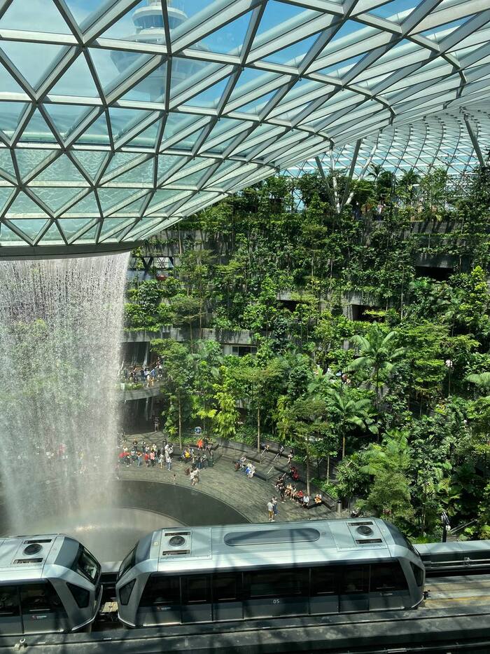 8 фото - это самый главный вид аэропорта. Водопад окруженный подобием ботанического сада или просто парка внутри помещения. Причем, мимо этого водопада проезжают поезда из терминала в терминал и вид изнутри наверное просто бомба.