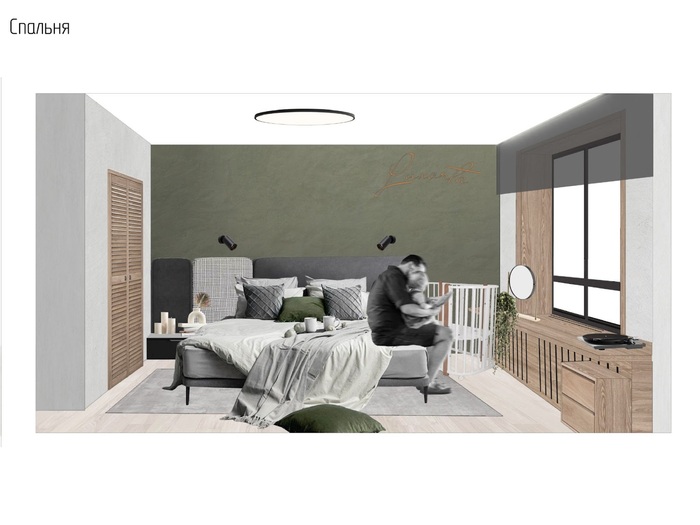 7) В зоне спальне увеличили кровать и сдвинули ее ближе к окну, установили