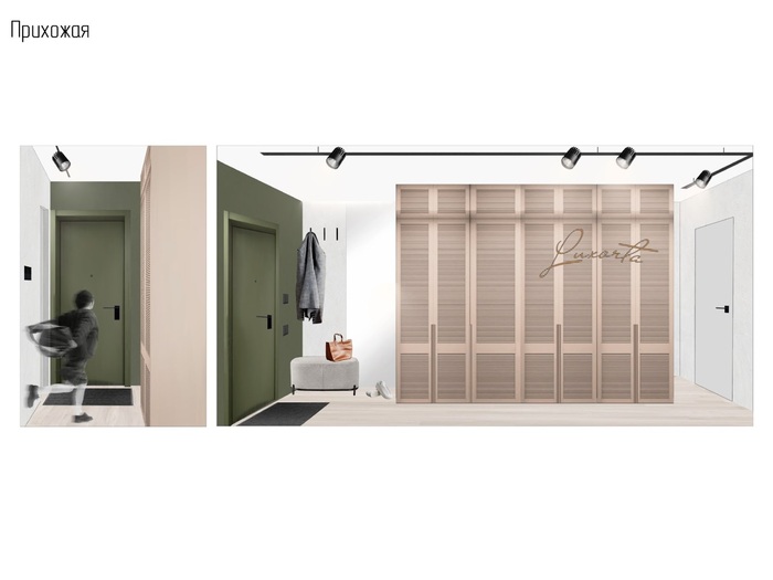 В квартире три места хранения то есть 2 шкафа и гардеробная, то есть по сути гардеробная которая состоит из полутора шкафов в этот шкаф прихожей По всей видимости он для верхней одежды для обуви еще каких-нибудь может быть шапок. Если в квартире будет жить семья, вряд ли сюда все верхняя одежда их поместится. Места очень мало либо придется ее запихивать плотно-плотно что не очень удобно.