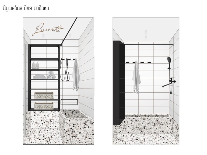 В прихожей рядом с санузлом можно сделать мойку для собаки. Если у вас есть собака, то после прогулки вы заходите сразу здесь моете песику лапы и не нужно идти в ванну, разносить грязь по всей квартире. А еще в такой мойке для собак можно споласкивать грязную обувь.