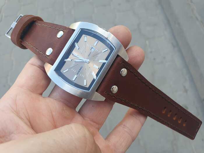 Не хотел долго делать ремешок и дело дошло до того, что владелец часов сам купил эту кожу и его уговорили почему то купить именно переднию часть...