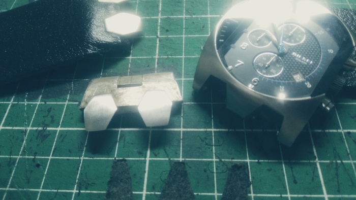 ...приступил к "разделке" и кожи и вырезанию кусков для ремешка...