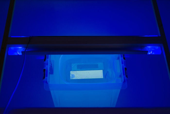 Внимание! Яркий ультрафиолет, даже из ближнего диапазона, совсем не полезен для глаз. Выключайте лампы, когда находитесь рядом, либо используйте защитные очки.