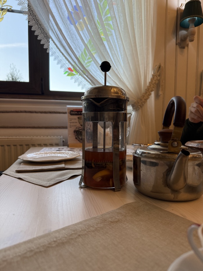 Чай подали в большом чайнике, он вкусный — для такого уровня заведения отлично.