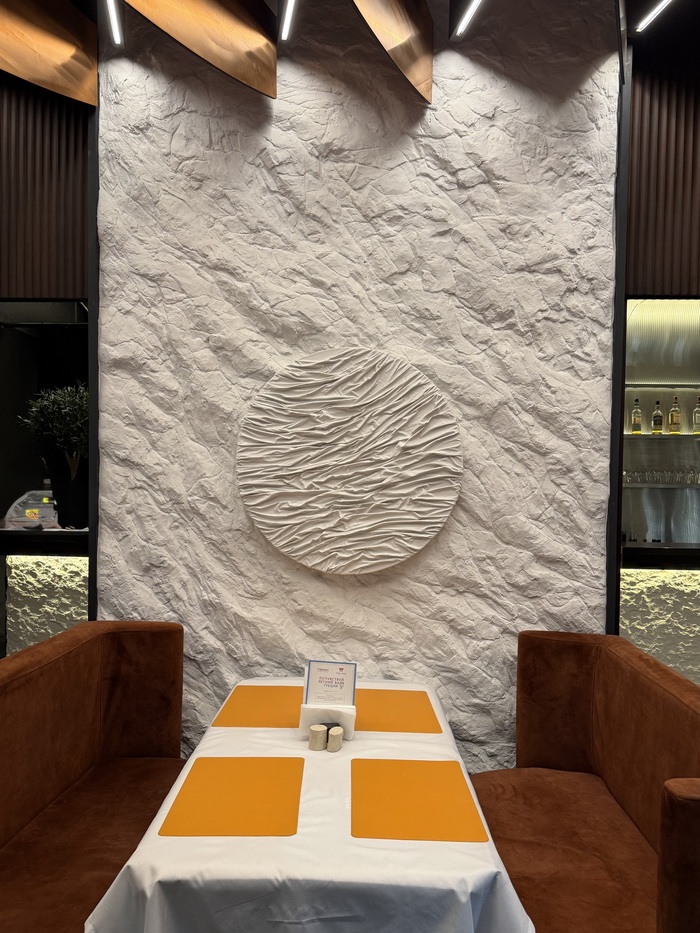 Обслуживание нормальное, дизайн очень спорный: столики стоят близко друг к другу так, что слышно говорящих шёпотом соседей, которые обсуждают какие-то интимные подробности — некомфортно. Всё в полумраке, видно, что заведение немного начинает уставать. Всё приносят и готовят быстро — с этим нет вопросов. Понятно, они зарабатывают деньги; им главное — поток и посадка. Общее впечатление ближе к удовлетворительному, то есть на троечку, или такая 4 с тремя минусами. Рекомендовать идти сюда точно не буду, и сам вряд ли сюда приду. Видел, что они открыли новый такой же ресторан, но всё равно вряд ли туда пойду.