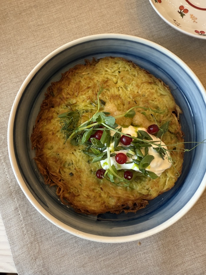 Ну и, конечно, сразу включился мой ресторанный критик. Я начал придирчиво рассматривать блюда и спрашивать у ребят из нашей компании, что они думают. Итак: салат немного жухловатый, а драник показался странным и жирным — здесь, наверное, больше вопрос вкуса.