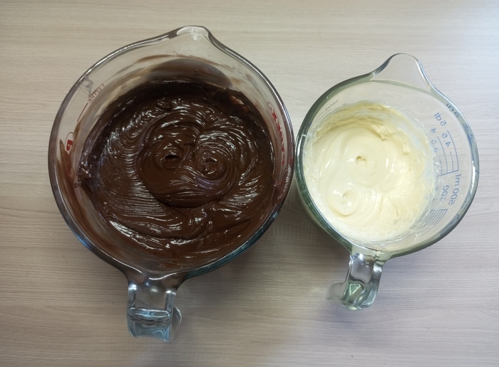 Получается два нежных и пластичных крема для украшения торта. Также такой ганаш здорово использовать для начинки торта или капкейков.