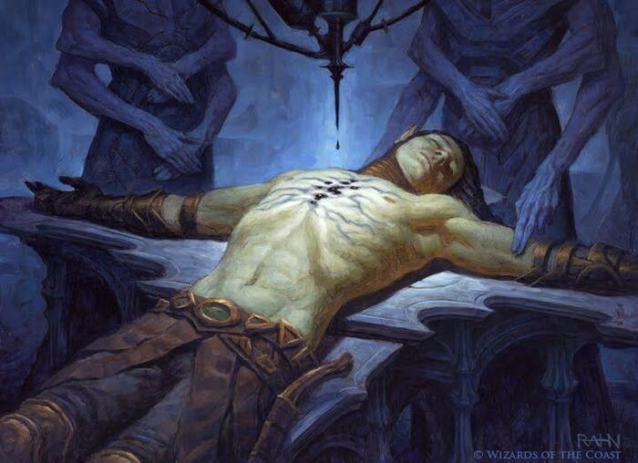 Черный клинок на двойном критическом успехе выпивает души поверженных врагов, а простым попаданием пьёт жизненные силы и магию жертв — и придает хозяину сил. Всё это заставные видели в бою. Раммель, как порядочный мечник, жаждал изучить этот меч и завладеть им по самые ТТХ.