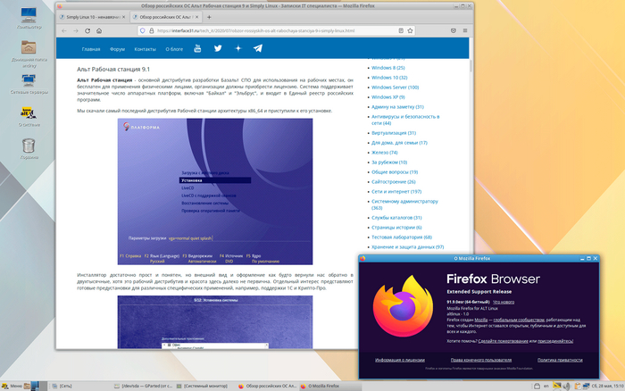 Из минусов можно записать отсутствие встроенной поддержки Snap и Flatpak, но это во многом нивелируется свежестью софта в Сизифе и возможностью EPM ставить и обновлять стороннее ПО из официальных источников. Именно таким образом в системе установлены и поддерживаются Яндекс Браузер или Телеграм клиент.