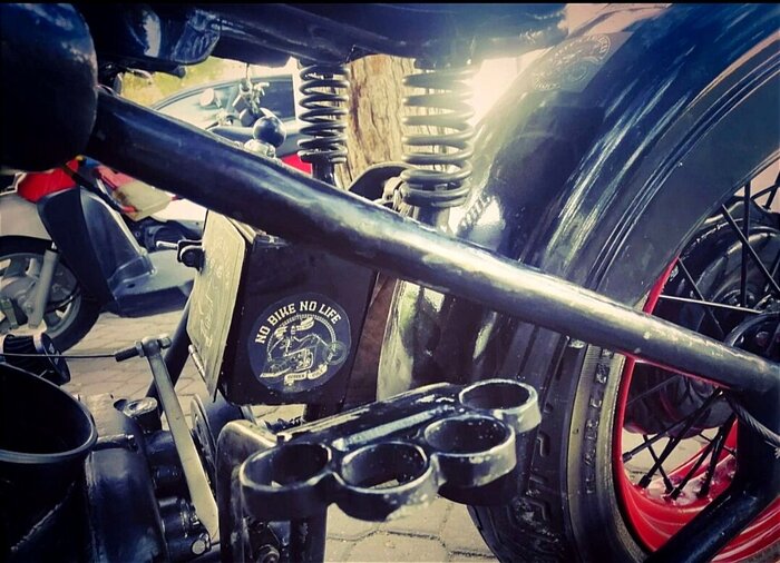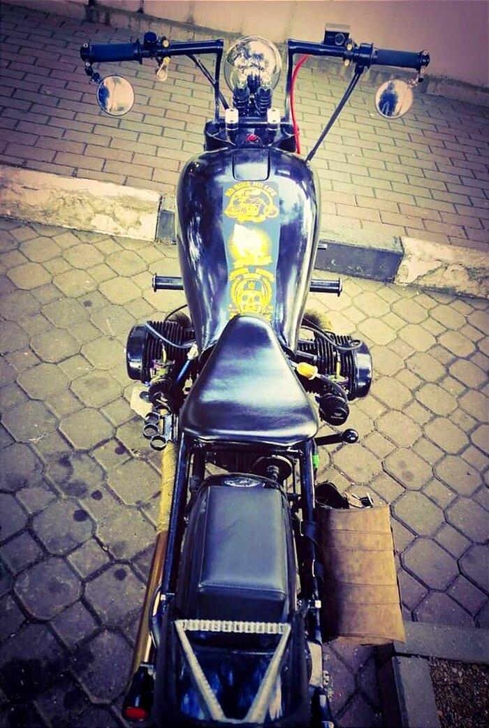 Мотоцикл узнал сразу. Он родился в мастерской HAMMERBIKE, в городе Новосибирске. За творчеством Романа Молчанова наблюдаю с обзора Болта на его "Синий БОБР".
