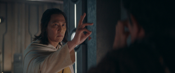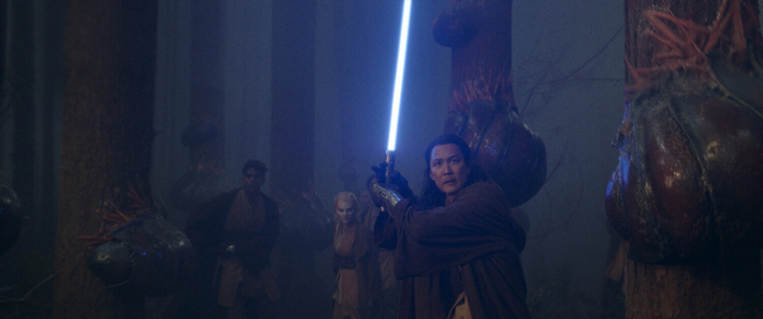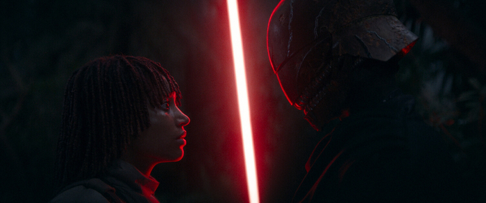 Но у «Аколита» на самом деле есть и плюсы. Во многом они связаны с фигурой Мэнни Хасинто, сыгравшего местного ситха-злодея. В его персонаже прекрасно всё: приятная бурятская внешность, крутой шлем, доминантная харизма. Он действительно выглядит угрожающе. И каждая экшен-сцена, инициированная главным злодеем, действительно радует качеством постановки. После «Кеноби» и «Асоки» смотреть, как ситх в 5-й серии устраивает смешную нарезку джедаев было действительно кайфово. Добротная хореография, забытые приёмы вроде «тракаты» с выключением и включением светового меча для создания элемента неожиданности — тут прям порадовали.