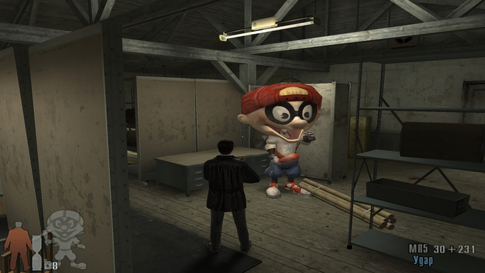 Ладно, хорошо, мы поняли, что технически игра устарела и по моим личным ощущениям, даже на момент выхода уступала своим коллегам. Это касалось картинки, но при этом находились всякие необязательные, однако приятные детали. Например, возможность взаимодействия со многими предметами на локации, от получения газировки в автомате до пускания воды из кулера, с характерным бульканьем. Помимо этого, во время перестрелок разработчики пытались воссоздать тот же эффект, что и в фильмах Джона Ву, когда от града пуль, вверх вздымается пыль, порох и различные предметы окружения, все кругом дымит, пыхтит и взрывается, оживляя экшен.