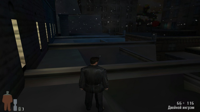 Раз уж я немного начал заигрывать с геймплеем, предлагаю взяться за него основательно, так как именно он в далёком 2001 году подарил игрокам свежий опыт в нуарных декорациях заснеженного Нью-Йорка. Сегодня игра ощущается приятно, брать под управление Макса — одно удовольствие. Персонаж двигается и стреляет в точности так, как от него этого требует игрок. Однако, я встретился с довольно неожиданной и как оказалось распространенной проблемой, которую обнаружил только во второй половине игры. Максимка почему-то любит прилипать к стенам, он может внезапно к ней примагнититься, если игрок стоял рядом и дальше ему придётся двигаться лишь вдоль этой стены. Лечится эта проблема прожимом ESC, этим же способом у меня фиксился баг, когда в одной из кат-сцен на движке игры персонаж бился об невидимую стену перед лестницей.
