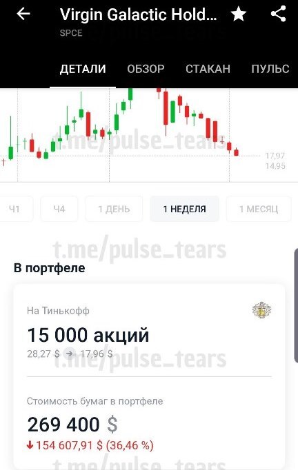2. Скрин из 2021-го. Минус, мать его, 154 тысячи долларов на любимой пульсятами Гале (тикер SPCE) Пожалуй, это один из самых жирных минусов на Virgin Galactic из всех засвидетельствованных в Пульсе. Мне кажется, инвестор за веру в компанию заслужил как минимум личное рукопожатие от сэра Брэнсона, а то и премиальный полёт. Жаль, у меня не сохранился никнейм этого влюбленного в космос человека.