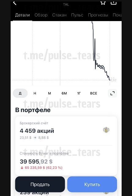 💊Он в отчаянии продал все оставшиеся бумаги TAL и купил на остатки денег другую акцию - мусорную американскую фармкомпанию, в слабой надежде, что её "разгонят" и он вернёт хотя бы часть убытков (спойлер: разумеется, этого не произошло).