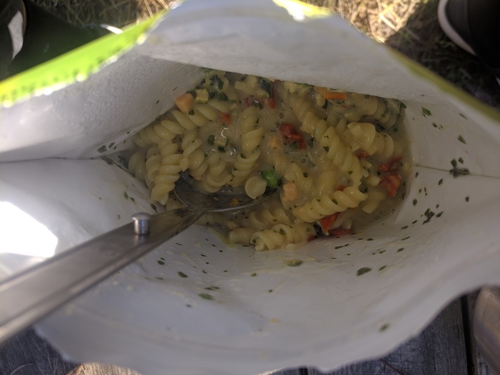 Далеко плыть не пришлось, чуть за Арзянкой я нахожу идеальное место на острове! Песочный пляж, площадка под палатку, лесок, вид! Потрясающе! Оперативно разбиваю лагерь, ставлю греться воду. Очень сильно проголодался за сегодня, поэтому решил съесть огромную порцию горохового супа с копченостями, то, что надо!