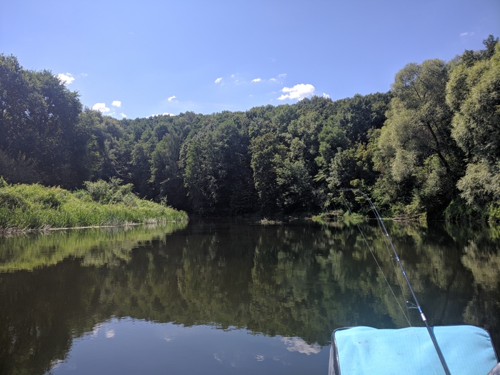 Иногда по реке проплывали местные рыбками. Они просто сплавлялись вниз по течению, пробрасывая спиннингом кусты и коряги. Причем, делали они это на обычных деревянных лодках без мотора. Как они возвращаются обратно? На веслах на такой лодке вверх по течению не подняться. Непонятно.