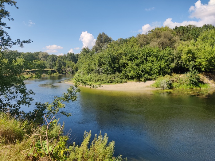 Чем ближе к селу Хоперское (это населенный пункт прямо перед городом Балашов), тем меньше течение. Я бы даже сказал, что оно пропало. Видимо, очень глубоко. Начинаю встречать много людей на байдарках, идущих вверх по течению, кто-то рыбачит в троллинг прямо с байдарки. Перед селом Хопер поворачивает направо, появилась связь. Много домиков с причалами и мостушками, беседками прямо у реки, очень красиво! У берегов встречаю людей, общаемся, дети интересуются откуда плыву. Время к обеду, но решаю уже пришвартоваться и собираться, а покушать позже. Пару пляжей, которые приметил, оказались неудобными для сборов, поэтому плыву дальше. Остановился на пляже у ул. Набережная.