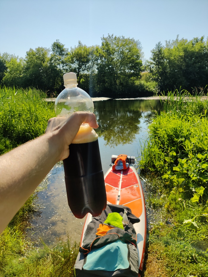 Включаю на телефоне КиШа и начинаю вальяжно собираться, попутно протирая и высушивая все вещи. Перед стартом достал из воды баночку колы, которую оставил там с вечера. Прохладная, сладкая, чистая энергия)