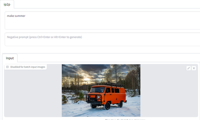 * Нужно возиться с настройками и ползунками, некоторые запросы дают слабый эффект если не выкручивать Text CFG на максимум. Например попытка сделать уаз киберпанковским просто чуть-чуть картинку покрасит синим.