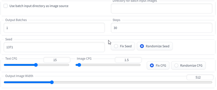* Никаких альтернативынх чекпоинтов на данный момент нет. Есть только instruct-pix2pix-00-2000 и всё. Как он работает, так и работает, без альтернатив. Самплеров тоже нет, работает с каким-то одним, и настроек только CFG и количество шагов.