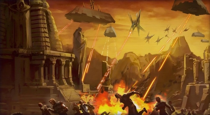 Мне, конечно, сразу возразят: с самого начала было ясно, что имперцы злодеи, они же планеты взрывают! Так-то оно так, но, положа руку на сердце, скажу: уничтожение Альдераана в «Новой надежде» не воспринимается всерьез. Вернее, его вполне достаточно, чтобы обозначить злодейство в рамках космооперы (жанра заведомо гигантоманского) и в рамках мономифа оригинальной трилогии, но уже в заметно посерьёзневших приквелах грядущий взрыв планеты выглядит откровенно слабо, особенно на фоне весьма выпукло показанных проблем старой Республики. Зрителю просто тяжело поверить и прочувствовать такое событие: из-за отсутствия близких аналогий в реальной жизни (к счастью, внутренних ракетных войск стратегического назначения пока не создали ни в одном государстве), и из-за отсутствия эмоциональной привязки к погибшим альдераанцам. Публика никого из жителей гибнущей планеты даже живьем не видела, а на экране просто шарик разлетается яркими блёстками — разумеется, зритель это воспримет в духе «смерть миллионов — статистика».