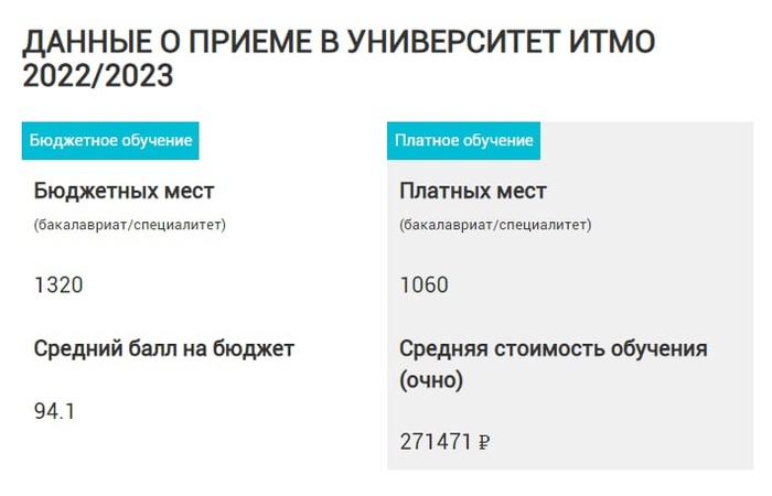 Вот, например, сколько стоит год в ИТМО по данным Вузопедии: