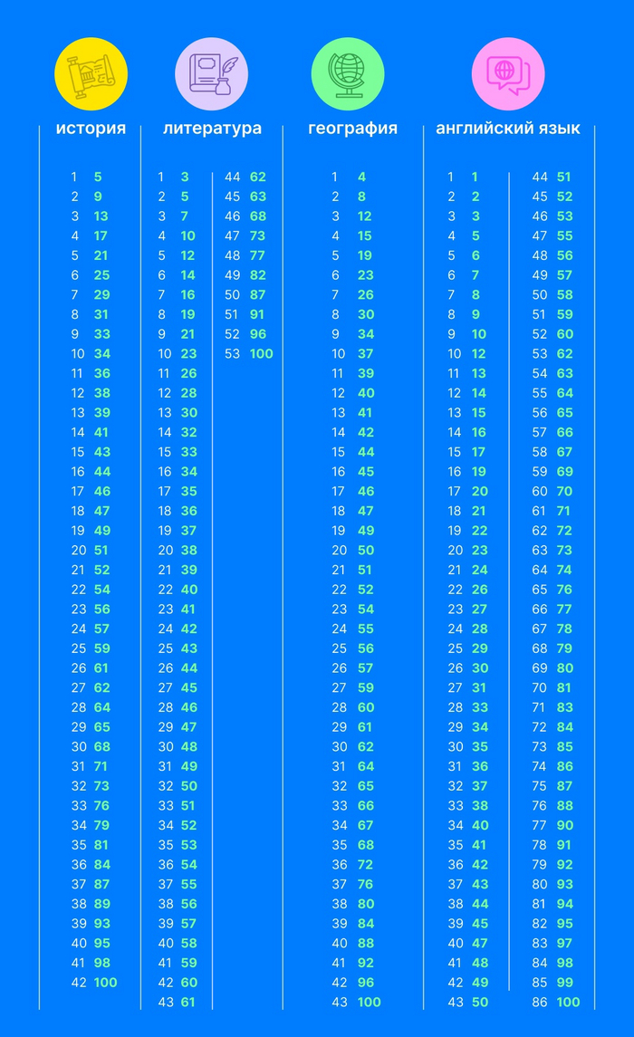 Наш ответ — ориентироваться на шкалу перевода баллов, чтобы примерно понимать, сколько баллов вы получите за выполнение того или иного задания по каждому предмету. Это не даст полной картины, но точно поможет вам сделать промежуточную оценку шансов.