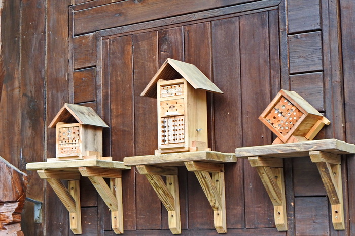 Также известные как пчелиные кондоминиумы, пчелиные дома или гнездовые блоки, эти структуры предоставляют гнездовые пространства для одиночных пчел или ос в местах, где естественная среда обитания может быть скудной. Эти виды устраивают свои дома в отверстиях в мертвой древесине, полых стеблях растений или других уголках и трещинах в ландшафте, поскольку они не выкапывают собственные норы.
