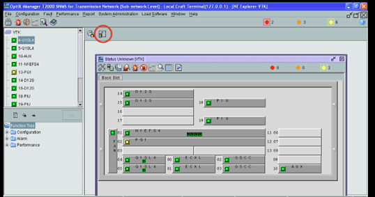 Выбрав из списка необходимый мультиплексор, нажимаем внизу кнопку NE Explorer и попадаем в интерфейс управления конкретной единицы оборудования. Здесь мы увидим список всех установленных плат и их состояния в окошке слева вверху, а также функции, доступные для выделенной платы, в окошке слева внизу. Если выделить корень дерева оборудования (Рис.3), то получаем список функций, применимый ко всему мультиплексору (функции мультиплексора и его плат не пересекаются).