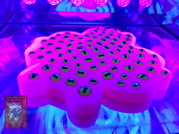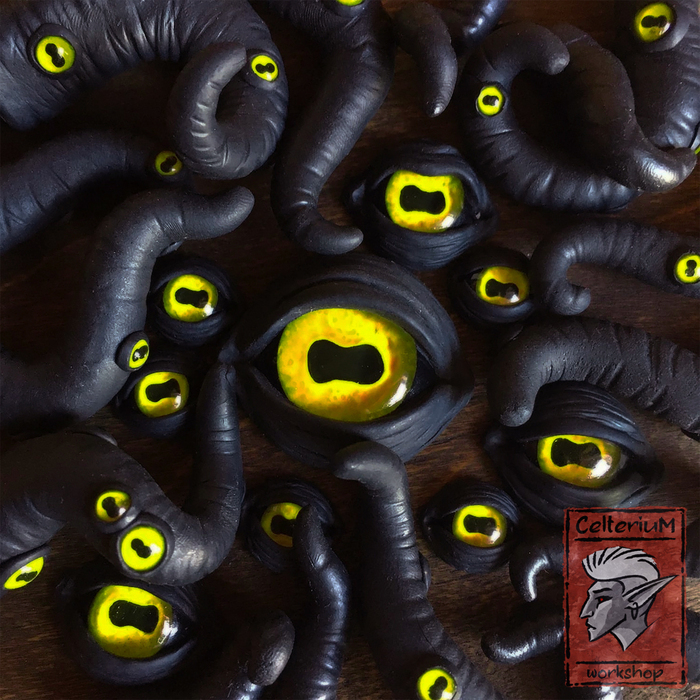 И так со всеми глазами, большими и малыми, кроме тех, что на тентаклях - там другая история и, увы, без форм - всё вручную, по капельке каждый. Обычно я трачу вечер, чтоб насолить маленьких пырилок на несколько призывов вперед.