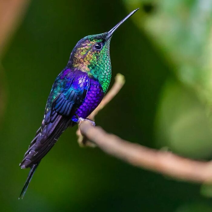 Колибри - уникальное семейство, насчитывающее более 300 видов, обладающие способностью обратного полета, а также являются самыми маленькими представителями птиц. Длина тела может составлять от 5 до 20 мм. Пищу в основном добывают в цветах, но не нектар, а маленькие насекомые. Большую часть жизни проводят в полёте, практически не садясь на землю.
