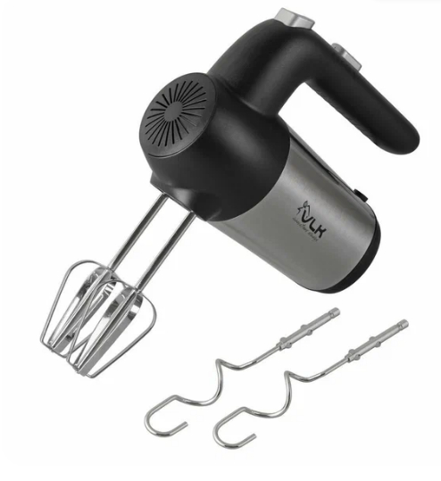 Миксер VLK MILANO-6902 — это классический представитель бюджетного сегмента, который делает ставку на надежность и простоту. Его главная особенность — прочный металлический корпус, который не только придает прибору солидный вид, но и способствует лучшему охлаждению двигателя. Мощность в 500 Вт позволяет миксеру уверенно справляться с большинством домашних задач: от взбивания сливок и яичных белков до замеса теста для печенья или пирогов. Комплектация включает две пары стандартных насадок из нержавеющей стали (венчики и крюки), которые легко меняются с помощью кнопки.