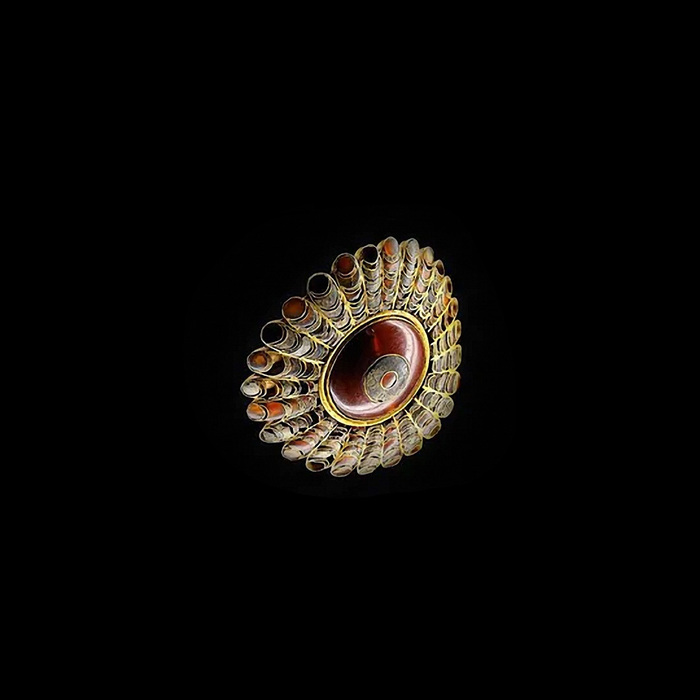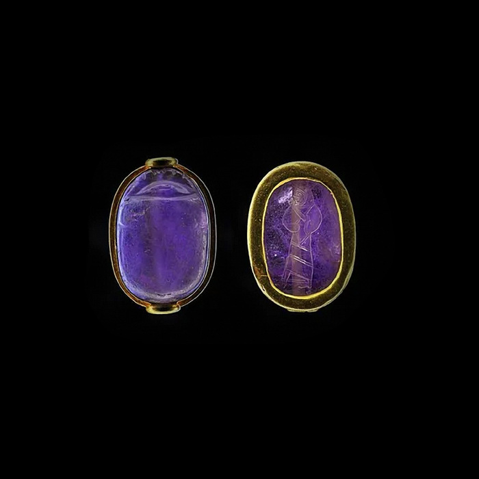 Талия мертвеца обвита поясом из золота, сердолика, аметиста и янтарных бусин, нанизанных на золотую нить.