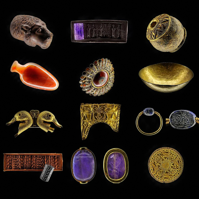 Иллюстрация 9. Золотые украшения в алебастровом сосуде из Склепа VII