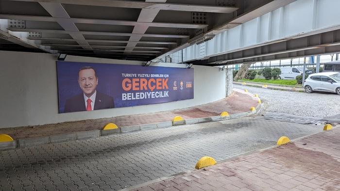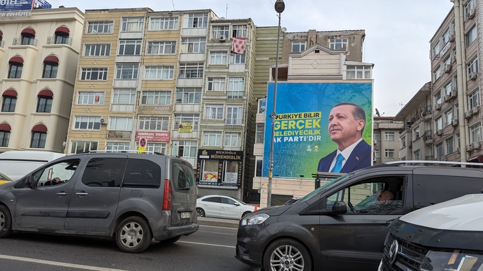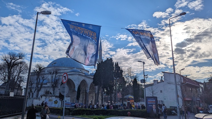 В марте на районе выборы в местные аппараты власти. Кругом плакаты, флаги и улыбающиеся лица кандидатов с добрыми глазами. Стоят палатки и поят народ чаем. Местный завхоз тоже часто машет Стамбульцам с плакатов, и обещает всего хорошего.
