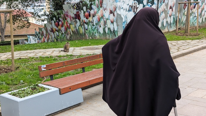 К беженцам из Сирии отношение куда более холодное. Тетеньки, закутанные в черные простыни с головы до ног, просят милостыню у обочины и лазиют по помойке.