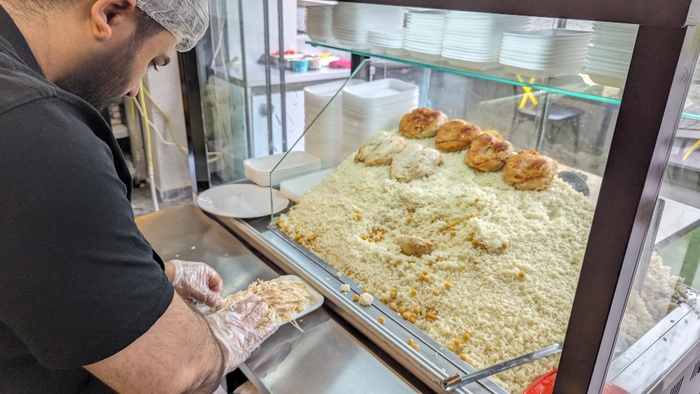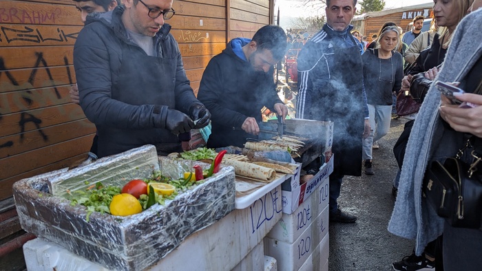 Лепешки из белой муки в стиле бабушкиной кабыртмы - популярный перекус. Можно взять с начинкой из картошки, сыра, мяса или яйца. Открытые пироги в стиле хачапури тоже хит продаж. Также популярны кренделя с кунжутом, По настроению, торговцы могут намазать их Нутеллой или закинуть масла и сыра.
