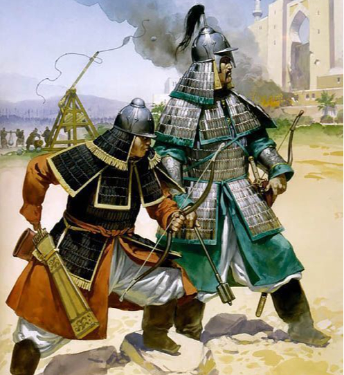 Монгольские воины в стальном и кожаном пластинчатом панцире, XIII в.