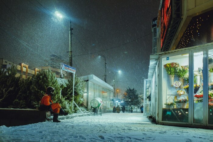 Кинематографические скитания по заснеженному городу в первых числах января.