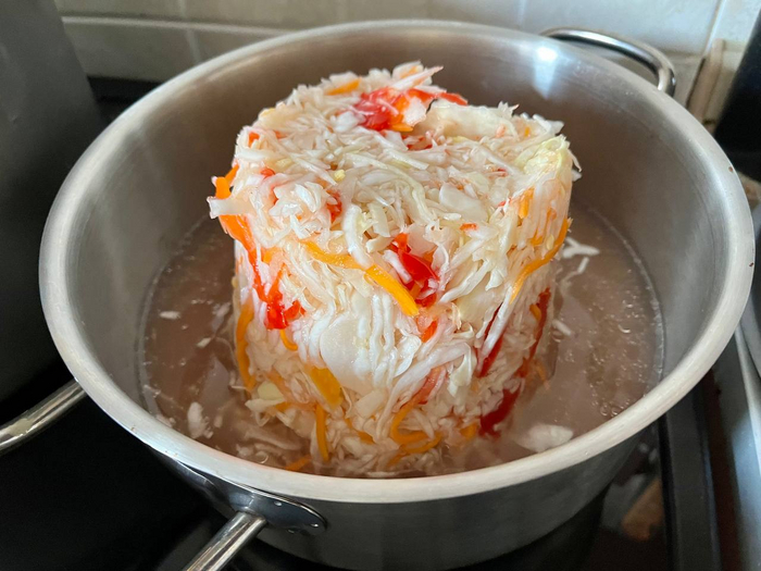 Я таким образом потратил половину основы - что-то ушло на картошку, что-то на капусту.