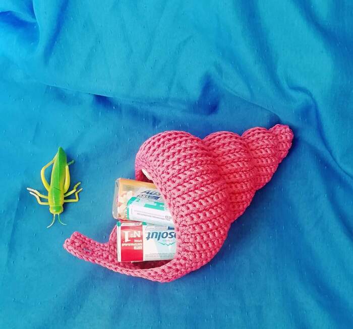 Ракушки можно использовать как подвесную корзиночку, складывая в неё расчёски, лаки, муссы и т.д. и т.п. . Попадались даже подобные сумочки.)