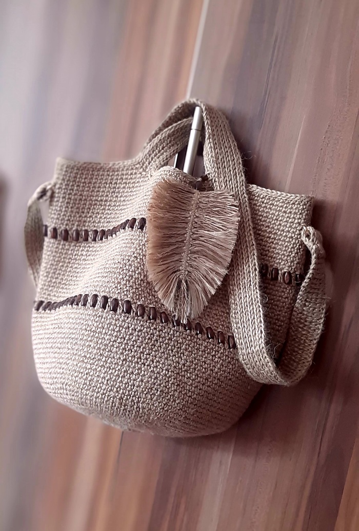 Вязала сумочки из разных ниточек. Из джута, трикотажной нитки, шнура. Вязала по МК сначала, потом уже просто смотря на картинку. Декор преображает сумочку.