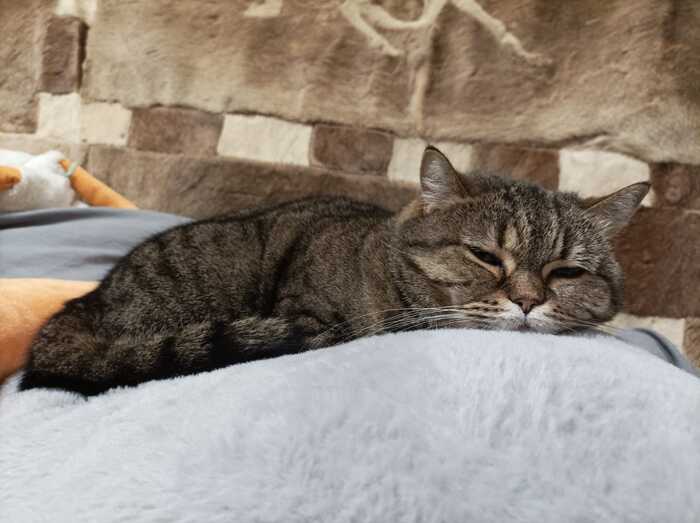 У кошки было сильнейшее воспаление, обезвоживание и высокая температура. После были антибиотики, перевязки и усиленное питание. Такое, что за неполных два месяца киса нажрала два килограмма и весьма похорошела. Мы ее назвали Штативом. Она очень компанейская, любит людей и хорошо ладит с другими кошками. Абсолютно не агрессивная. Стойко вытерпела лечение и прочно укрепилась в наших с мужем сердцах.