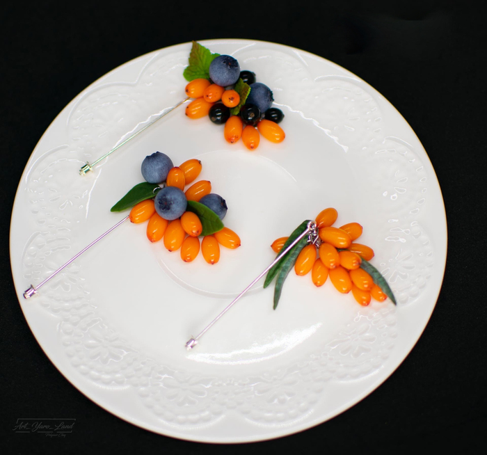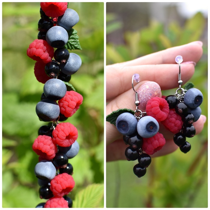 Все ягодки сделаны вручную из полимерной глины и эпоксидной смолы.