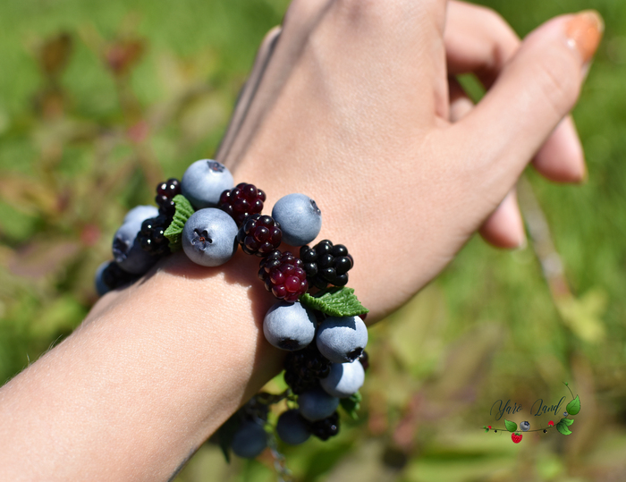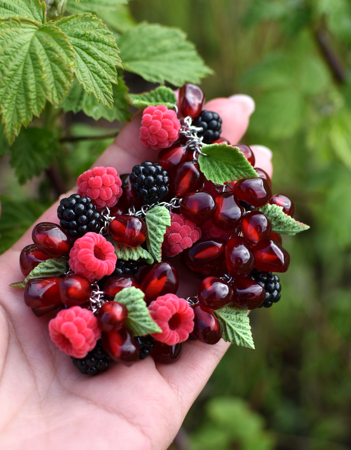 На этот раз - ягодный браслет с малинами, ежевиками и гранатовыми зернами.