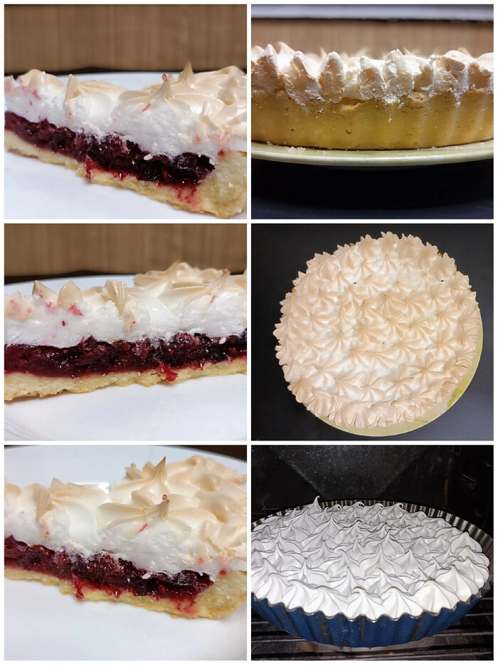 Песочный пирог с клюквой и меренгой