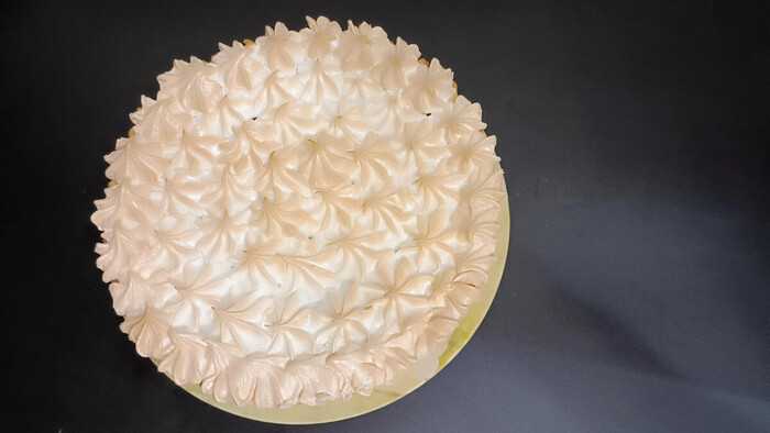 Отправляем пирог в духовку еще на 10 минут до подрумянивания меренги. Готовый пирог остужаем, нарезаем на порционные кусочки и подаем к столу.